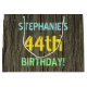 Este divertido diseño de bolsos de regalo de cumpleaños incluye un mensaje como "¡EL CUARENTA CUATRO CUMPLEAÑOS DE STEPHANIE!", donde el nombre puede ser personalizado. El fondo está decorado con un estilo rústico, marrón y falso de aspecto de grano de madera. El texto del mensaje de personalizable presenta colores como azul, amarillo y verde, y tiene un aspecto inspirado en el de las letras pintadas y estampadas. Una bolsa de regalo con tema de cumpleaños como esta podría ser una manera divertida de envolver un regalo para alguien que está celebrando su cuarto cumpleaños. [~Z0000319]
