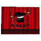 ilustracion gráfico del gorra de un mago con fondo de cortina roja de la artista/diseñadora Charmaine Paulson en una bolsa de regalo personalizado.