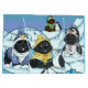 Perros cachorros de Newfoundland, pintados a mano y coloreados, presentados en un maravilloso país invernal, ¡yendo en una marcha de pingüinos!