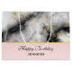 Bolsa De Regalo Grande Mármol gris blanco moderno con cumpleaños de cinta