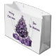 Feliz Navidad púrpura bolsa de regalo de árbol de Navidad. Una exclusiva y grandiosa bolsa de regalo. Personalizar con su elección de texto en la parte delantera y trasera. Ten un Navidad morado. Disponible en diferentes colores y acabados.