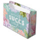 ¿El distanciamiento social te ha bajado? Regale a un amigo, pariente o ser querido con algo de lo esencial de su estadía en casa en esta tierna y humorística bolsa de regalo. El diseño presenta plantas suculentas color agua pastel que rodean las palabras "succs de cuarentena sin ti" en un fondo acuático claro.