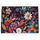 Un caleidoscopio de flores en vivos tonos de joyas (coral, cobalto, canario y ciruela) irradia a través de un fondo negro dramático en un arreglo floral espejado. Audaz y romántico, esta huella simétrica del jardín le da elegancia a cualquier decoración o diseño de regalo.