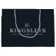 Una elegante y moderna bolsa de regalo de vacaciones con tu apellido que aparece en la tipografía clásica combinada con escritura manuscrita en blanco un magnífico color azul oscuro de color negro. ¡Un diseño mínimo sorprendente para destacar entre la multitud esta temporada de navidades!