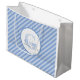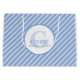 Bolso de regalo grande monogramo personalizado para bebés. Perfecta ducha de bebé o el embalaje de regalo de cumpleaños del niño. Combinación tradicional de color azul pastel y blanco. Personalizado inicial y nombre rodeado por las estrellas y rayas en la parte delantera. Añada el nombre, el monograma y la fecha (o déjelo en blanco) con la herramienta de edición Zazzle fácil de usar! Visita la tienda para ver toda la colección. Hay pegatinas, mantas, almohadas, bebés y mucho más disponible.