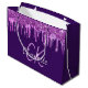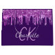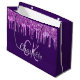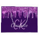Un fondo de color púrpura intenso decorado con gotas de purpurina falsa de color rosa y púrpura, con un efecto de goteo de pintura. Personaliza con un nombre y las iniciales del monograma. El nombre está escrito con una tipografía moderna de letra manuscrita, en letras rosas. Perfecto para cumpleaños, fiestas de soltera, despedidas de soltera y baby showers.