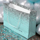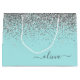 Bolsa De Regalo Grande Monograma de brillo plateado y azul turquesa Aqua