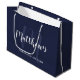 Bolsa de regalo de Monograma y Nombre de Familia personalizada que incluye el nombre de la familia en un estilo de letra de escritura moderno y blanco y un monograma en un estilo de tipo de letra azul marino claro estilo de escritura moderno como fondo con texto personalizado en sans blancos serif estilo de fuente sobre fondo azul marino. Perfecto como bolsa de regalo para reuniones familiares y bolso de regalo para cualquier ocasión especial.