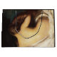 Este diseño presenta un cuadro del artista impresionista estadounidense Joseph DeCamp (1858-1923). Representa la parte de atrás de una hermosa mujer mientras reclina elegantemente en su cama. Sus piernas están envueltas alrededor de la manta blanca que se sienta encima de su cama, pero sus pies desnudos son visibles. Toda la piel cremosa de su espalda está expuesta. Ella se está secando el pelo después de haberse bañado. La mujer está sosteniendo su largo pelo castaño en la mano mientras intenta secarlo. Su pelo es lustoso. La postura de la mujer es delicada y sensual. El arte original fue pintado por Joseph DeCamp en 1899.