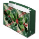 Bolsa de regalo de Navidad Plaid Verde Oro Blanco con Corona.