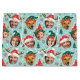 Haga que sus regalos destaquen esta temporada de vacaciones con una bolsa de regalo de fotos personalizado! Esta divertida plantilla cara a cara se personaliza con cinco de tus fotos favoritas dentro de marcos caprichosos de gorras. Con sombreros de Santa Claus festivos, estilos elfos lindos y corderos de renos, con un fondo de árboles de Navidad, bayas, copos de nieve y estrellas. ¡Este diseño simple y lindo es perfecto para niños, familias, amigos y mascotas! Una bolsa de regalo de tipo allover, disponible con un acabado mate o brillante. Colores impresos: azul, rojo, verde, marrón, blanco y dorado.