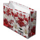 Navidades florales Bolsa de regalo grande de color rojo y blanco