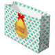 Hermosa bolsa de regalo con una gran bola de Navidades dorados y Navidades con un patrón de berry holly sobre fondo blanco. Se puede personalizar el texto navideño.