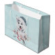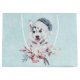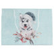 Una bolsa de regalo con una pintura de acuarela titánica y tierna de un perro descascarillado con un sombrero azul de Santa.