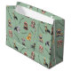Esta bonita bolsa de regalos con motivos de Navidades incluye varios perros ilustrados que usan gorras festivos de invierno y bufandas con un fondo verde claro. Incluye varias frases de Navidades puntiagudos (Felices Howlidays, Paw Humbug, Furry and Bright, Yappy Holidays y Santa Claw) que puedes dejar tal cual o personalizar con tu propio apellido u otros saludos de vacaciones. Perfecto para ese regalo que tienes para el amante del perro, o para el propio perro.