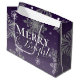 Regale sus regalos navideños de esta temporada navideña con una bolsa de regalo de ferry morado y Navidades de copos de nieve brillante. El diseño de la bolsa de regalo incluye copos de nieve que caen con el saludo de Merry y Bright en una fuente moderna y un suave overlay blanco. También hay artículos de regalo y de vacaciones disponibles con este diseño.