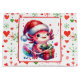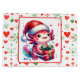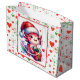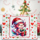 Una linda bolsa de regalo para un niño con Navidades con temas de axolotl personalizado. Un axolotl lindo vestido con un sombrero de Santa rodeado de corazones y copos de nieve sosteniendo un regalo.