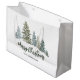 Celebre la temporada con estilo con esta gran bolsa de regalo para Navidades rústicos con un bosque de acuarelas de árboles verdes. El diseño festivo combina el encanto rústico con la tipografía moderna, lo que lo hace perfecto para los regalos de sus Navidades a la familia y amigos. Personaliza con tu apellido.