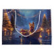 Podrá navegar por la magia de la temporada de vacaciones con este bonito ilustracion, que muestra a un orgulloso perro sentado en un barco decorado con gusto, deslizándose a través de un tranquilo lago de Navidades. Las luces de los pinos cercanos reflejan el agua, lo que aporta un resplandor cálido y festivo que realza el ambiente acogedor. Los adornos se deslizan por los lados del barco, mientras que los farolillos brillan por el camino, creando una escena que capta la verdadera esencia del calor y la alegría de los Navidades. Esta obra de arte nostálgica aporta un toque de magia navideña a cualquier espacio, perfecto para los que aprecian el espíritu de la temporada.