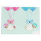 Dulce bolso de regalo de mellizos con chica y niño bajo globos azules y rosados.