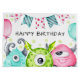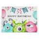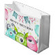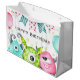 Coloca tu regalo para ese pequeño monstruo en tu vida en esta bonita bolsa de regalo con temática monstruosa. El mensaje dice 'Cumpleaños feliz' y puedes guardar el texto del diseño tal cual y editarlo para que encaje.