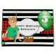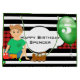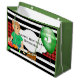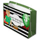 Una bolsa de regalo genial con franjas blancas y negras audaces y modernas, un patrón de gingham verde y negro fresco, niños jugando y personalizando en ambos lados.