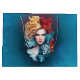 Lion's Eye and Starry Hair, la cabeza de una mística mujer envuelta en un halo brillante de pelo largo y fluido, brilla en un fascinante juego de rubia y rojo. Este cabello fluye como una cascada de luz y fuego mientras brilla en contraste con el fondo azul profundo - un océano de infinito. Los ojos, un azul brillante, parecen albergar los secretos del universo. A los lados de su cabeza hay tres cabezas de león - majestuosos guardianes de su misterioso mundo. La cabeza de cada león cuenta su propia historia de coraje y sabiduría mientras vigilan la belleza de la mujer en un silencio sobrecogedor.