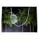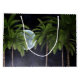 Este diseño presenta un paisaje nocturno: una luna llena brilla frente a un cielo negro oscuro, y las palmeras con sus frondas verdes están en primer plano. Es una hermosa pieza de arte generado por computadora.