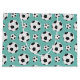 Envuelve bien tus regalos con este papel de envoltura fresco, con un patrón de balones de fútbol y fondo verde azulado.