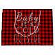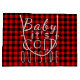 Hermoso, único, clásico, de moda, bonito y decoración de estilo tártaro rojo y negro de leñador con un brillante borde rojo y blanco. Y divertido "Baby It Cold Outside" cita texto escrito en tipografía.