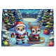 Bolsa de regalo para los Personalizados Adorables Santa y los Navidades de renos. Santa y reno parados en un bonito caprichoso de invierno tierra de maravillas. Fondo azul de copo de nieve.