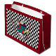 Esta llamativa bolsa de regalo de personalizable es de la temática de Alice in Wonderland. Presenta el Conejo Blanco y un clásico tablero de ajedrez blanco y negro con un fondo rojo profundo. La imagen del Conejo Blanco es el ilustracion original de la famosa obra de Lewis Carroll. El conejo lleva un escudero real adornado en corazones y lleva una trompeta, pergamino y su reloj de bolsillo. Hay un punto para personalizar de la bolsa con su propio nombre o texto en la parte inferior. El texto por defecto dice Alicia en el País de las Maravillas con letra cursiva blanca. Simplemente pulse el botón Personalizar para editar o eliminar el texto, o el botón Personalizar para cambiar la fuente, el tamaño, el color de fuente o el color de fondo si lo desea. Es un regalo excelente o un objeto fiesta para los amantes de los estampados a cuadros y a bordo, Alicia en el País de las Maravillas, el Conejo Blanco y los diseños peculiares y elegantes. Este diseño también está disponible en papel de regalo, placas, servilletas, pegatinas y otros artículos.