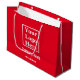 Usar sus bolsas de compras como herramienta para comercializar su negocio es fácil con bolsas de marca como esta. Puede reemplazar el archivo de presentación con el archivo de logotipo de su empresa. Además, hay un lugar para agregar el nombre y sitio web de tu empresa. La bolsa es roja. El texto es blanco.