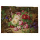 Una hermosa impresión de "Pieza Rosa en el suelo forestal con mariposas, canasta y cinta azul", pintura creada por el pintor alemán Josef Lauer (1818-1881).