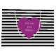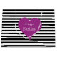 Bolsa De Regalo Grande Pink Love Heart Black & White Striped Pattern Text