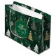 Bolsa De Regalo Grande Pinos dorados Copos de nieve plateados Hunter Gree