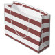 Un popular bolso de regalo de gran tamaño, rojo suave y blanco, rayas de rugby. Personalice este patrón de color nómada agregando el nombre y la inicial monogramada de su destinatario. Este elegante diseño de monograma forma parte de la colección de colores de verano de Marsala Fiesta Essentials.