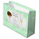 Primer Comunicado Niño afroamericano Gracias bolso de regalo para presentarle a sus invitados después de la ceremonia con un patrón de Damasco verde. Todo el texto se puede cambiar para adaptarlo a sus propios requisitos. Gráficos de BlackCatsMedia y Zenwaredesign.