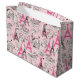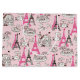 Bolso brillante grande del regalo con una imagen de las escenas del café rosado y marrón de las torres Eiffel y de París en rosa claro. Vea el bolso medio a juego del regalo. Vea la colección entera del bolso del regalo del Cancan en la sección ESPECIAL de los favores de fiesta de los TACTOS el |.