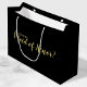 ¿Serás mi empleada de honor? Bolsa de regalo de propuesta moderna con el título "¿Serás mi empleada de honor?" en oro estilo de letra de escritura moderna sobre fondo negro. Nota: Los detalles del Relieve metalizado se simulan en la obra de arte. Este producto no contará con ningún relieve ni capa que creen un efecto metalizado.