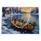Bring charming, wrinkly-faced cuteness to your holiday season with this adorable Pug Christmas design! This magical scene features three cute, expressive Pugs sitting contentedly in a cozy wooden boat, gently floating on a serene snowy lake at sunset. The boat is beautifully adorned with glowing Christmas string lights and fragrant pine garlands, while the dogs wear festive scarves. They are surrounded by colorful wrapped presents and cheerful holly branches. Soft snowflakes gently fall, and the shimmering reflection of the lights on the water creates a truly magical winter holiday atmosphere. This design is a perfect Christmas gift for any Pug owner, dog lover, or admirer of festive and beloved companion dog art, capturing the serene joy of the season.
