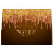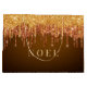 El purpurina brillante dorado de lujo gotea con un fondo marrón —texto personalizado en oro.