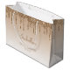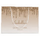 Esta bolsa de regalo de la quinceañera de moda tiene un borde de goteo purpurina de imitación dorada brillante y un fondo sombrío de oro. Personalizarla con su nombre en escritura a mano.