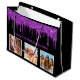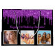 Por 50 años (o cualquier edad). Un elegante fondo negro. Con goteo de purpurina falso morado, pinta goteando. Personaliza y agrega 3 fotos, una fecha, nombre y edad de 50 años. Texto púrpura. El nombre está escrito con una escritura de estilo con letras a mano moderna.