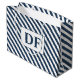 Esta "bolsa de regalo grande de rayas azules/blancas" de Iniciales Personalizados incluye rayas azules y blancas y se puede personalizar con las iniciales del destinatario. Haz que tus regalos sean aún más memorables con esta elegante y personalizable bolsa de regalo.