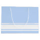 Este diseño deportivo y moderno presenta rayas de carreras blancas de borde inferior contra un fondo azul bebé.