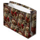 Santa aparece en un majestuoso y rico abrigo rojo, listo para embarcarse en su viaje de obsequios. La imagen está ambientada en una escena nocturna nevada con un reno, evocando la magia y el misterio de la víspera de los Navidades.