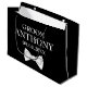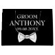 Bolso de regalo grande para novio moderno, elegante, masculino, negro y blanco. Perfecto para regalos de boda. Puedes personalizarlo con tu nombre y fecha.