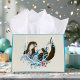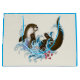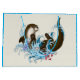 Una linda nutria marrón del río jugando en el agua con flores en un fondo de color crema