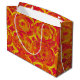 Bolsa de regalo de Aceites Rojos, Naranjas y Amarillos 7365 con estampado hermoso usando suaves remolinos de rojo, naranja y amarillo. Póngalo en pareja con papel tisular a juego. Por https://www.zazzle.com/store/celestesheffey